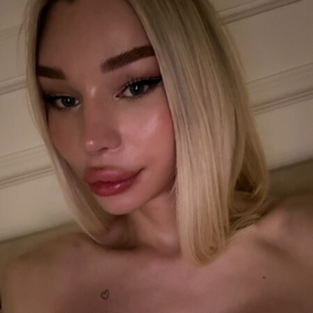 A hypersexual, hot blonde with a sweet tooth, huge lips, and luscious tits...